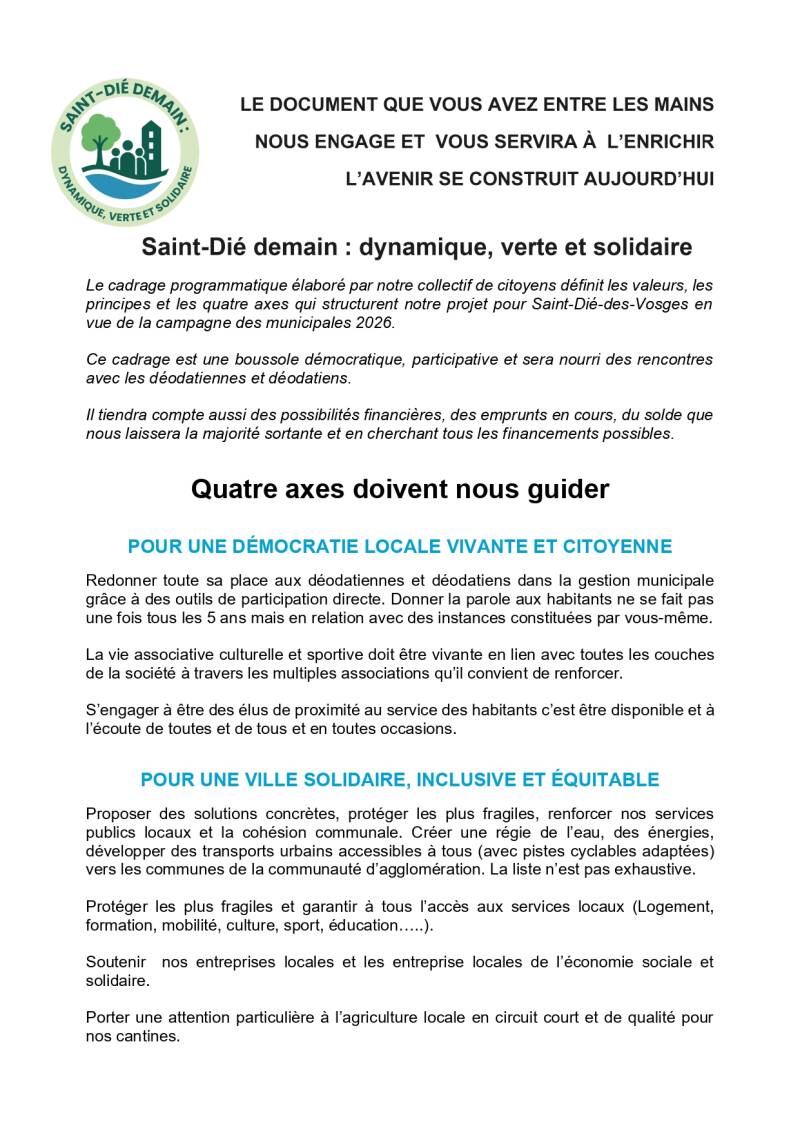 Nous sommes la seule liste citoyenne à Saint-Dié-des-Vosges, avec un programme participatif, construit avec les habitant.es, à partir de vos idées et de vos besoins.